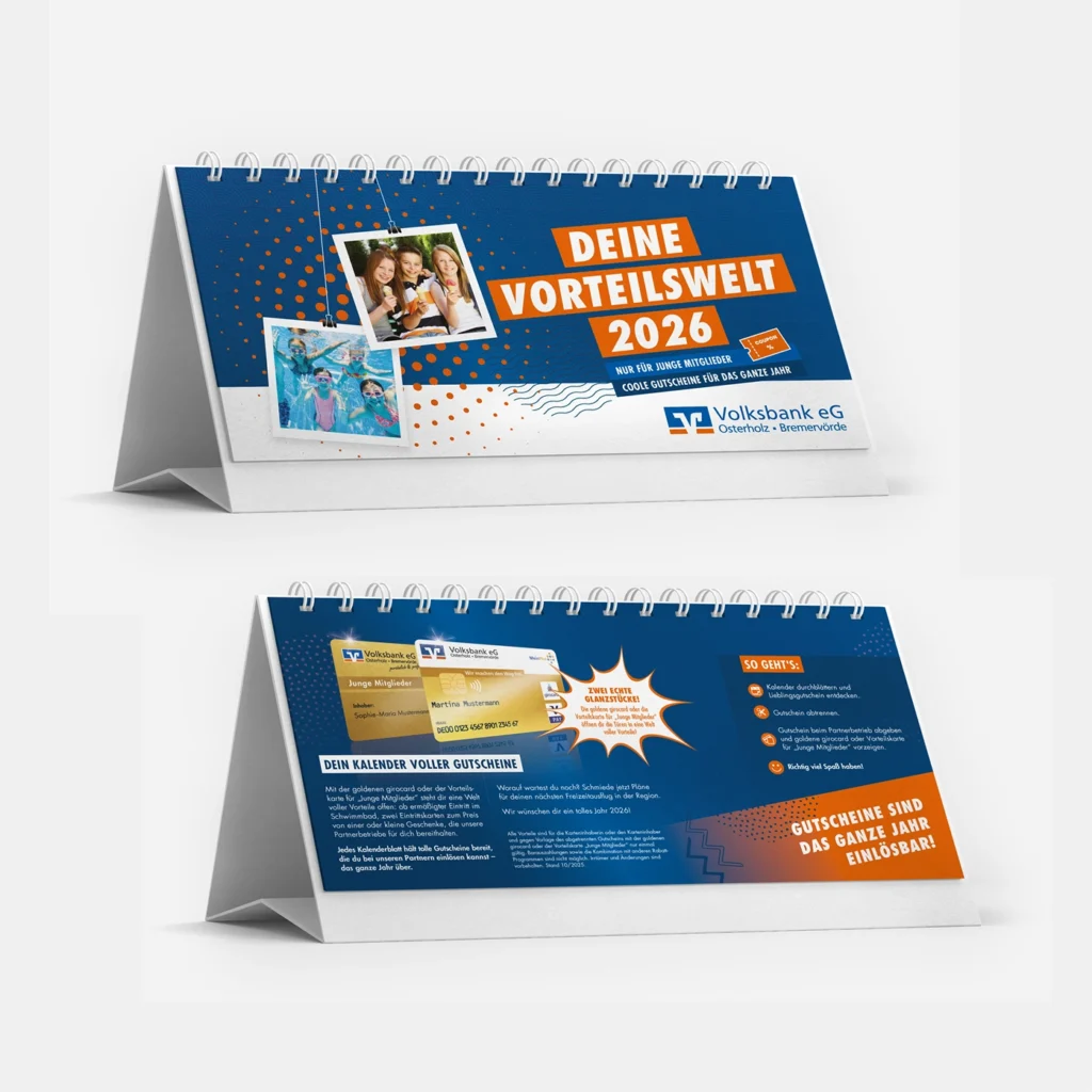 Wir haben eine crossmediale Kommunikationsstrategie entwickelt, die zielgruppenspezifische Kampagnen und Aktionen umfasst. Ein einheitliches Layout sorgt für einen konsistenten Markenauftritt, steigert den Wiedererkennungswert und stärkt die langfristige Präsenz der Marke im Bewusstsein der Zielgruppe. Unsere Leistungen umfassen die Umsetzung und Koordination von Kampagnen zur Mitgliedergewinnung, zur Ansprache jüngerer Zielgruppen, Sonderaktionen wie die Kooperation mit dem Nordwest Ticketshop, das Anteilskonzept sowie die regelmäßige Aktualisierung des Couponhefts. Durch einen ganzheitlichen Ansatz, der die Kanäle Digital, Print und Filiale verbindet, haben wir ein harmonisches Design entwickelt, das die Gestaltungselemente der Volksbank nahtlos mit der genossenschaftlichen Gemeinschaftswerbung verbindet.