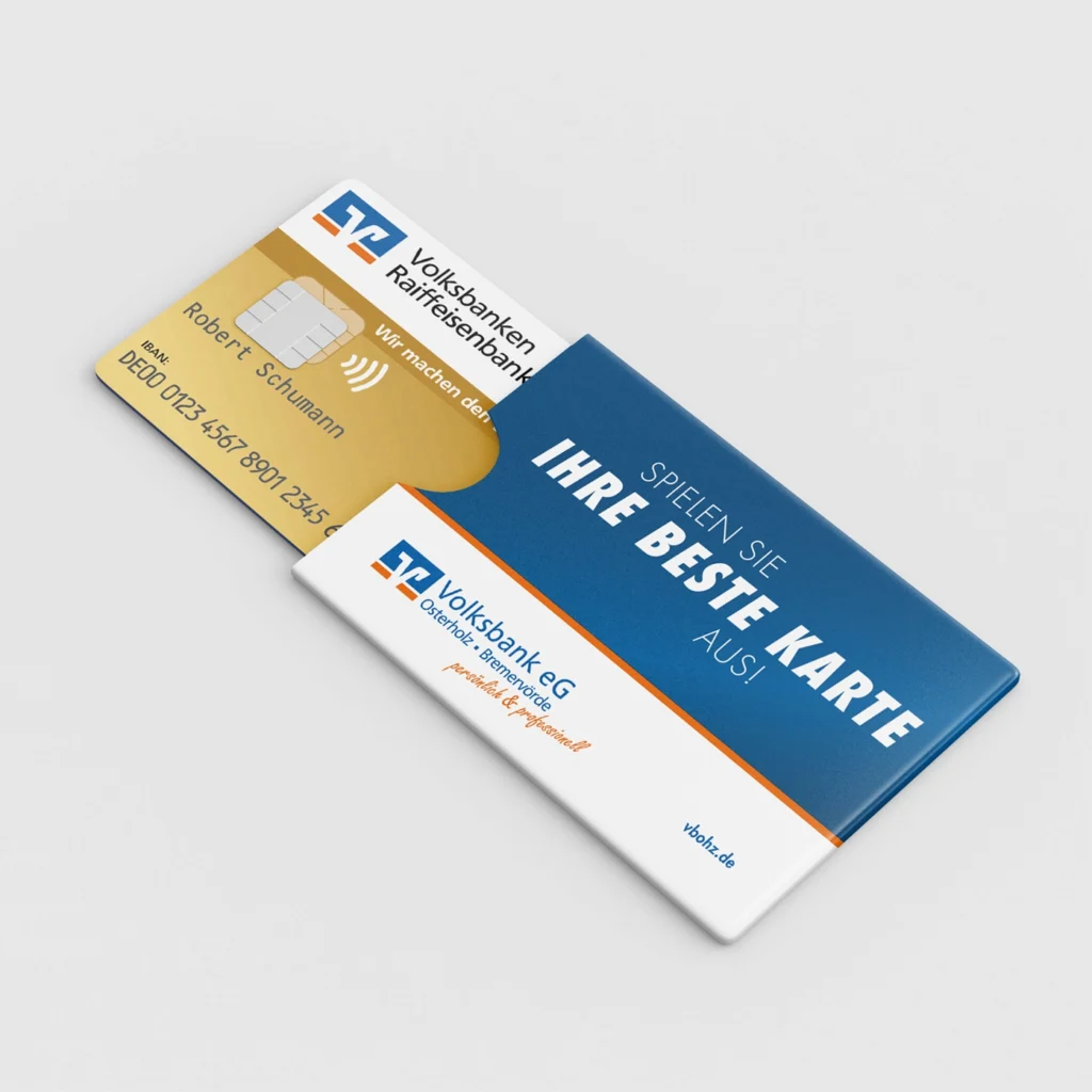Für die Volksbank eG Osterholz Bremervörde konzipieren und realisieren wir die Kommunikation rund um die exklusive goldene girocard – eine Debitkarte, die weit über die üblichen Funktionen einer Bankkarte hinausgeht. Karteninhaber profitieren von attraktiven Rabatten bei regionalen Partnerunternehmen sowie von exklusiven Premium-Angeboten in ganz Deutschland, darunter Vergünstigungen in Gastronomie, Freizeit und Einzelhandel. Die „MeinPlus“-App bietet eine benutzerfreundliche Übersicht aller Vergünstigungen in der Nähe, die direkt über das Smartphone abgerufen werden können.