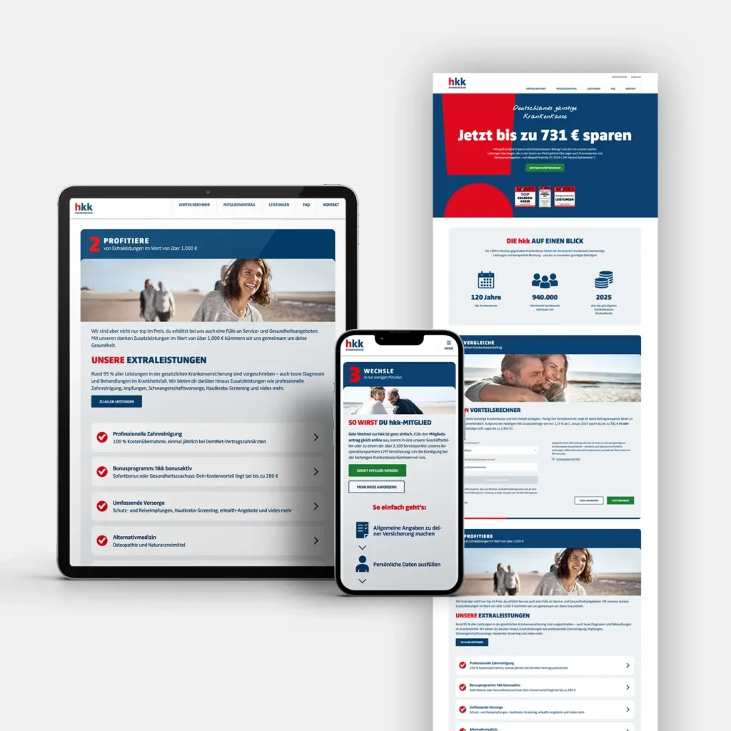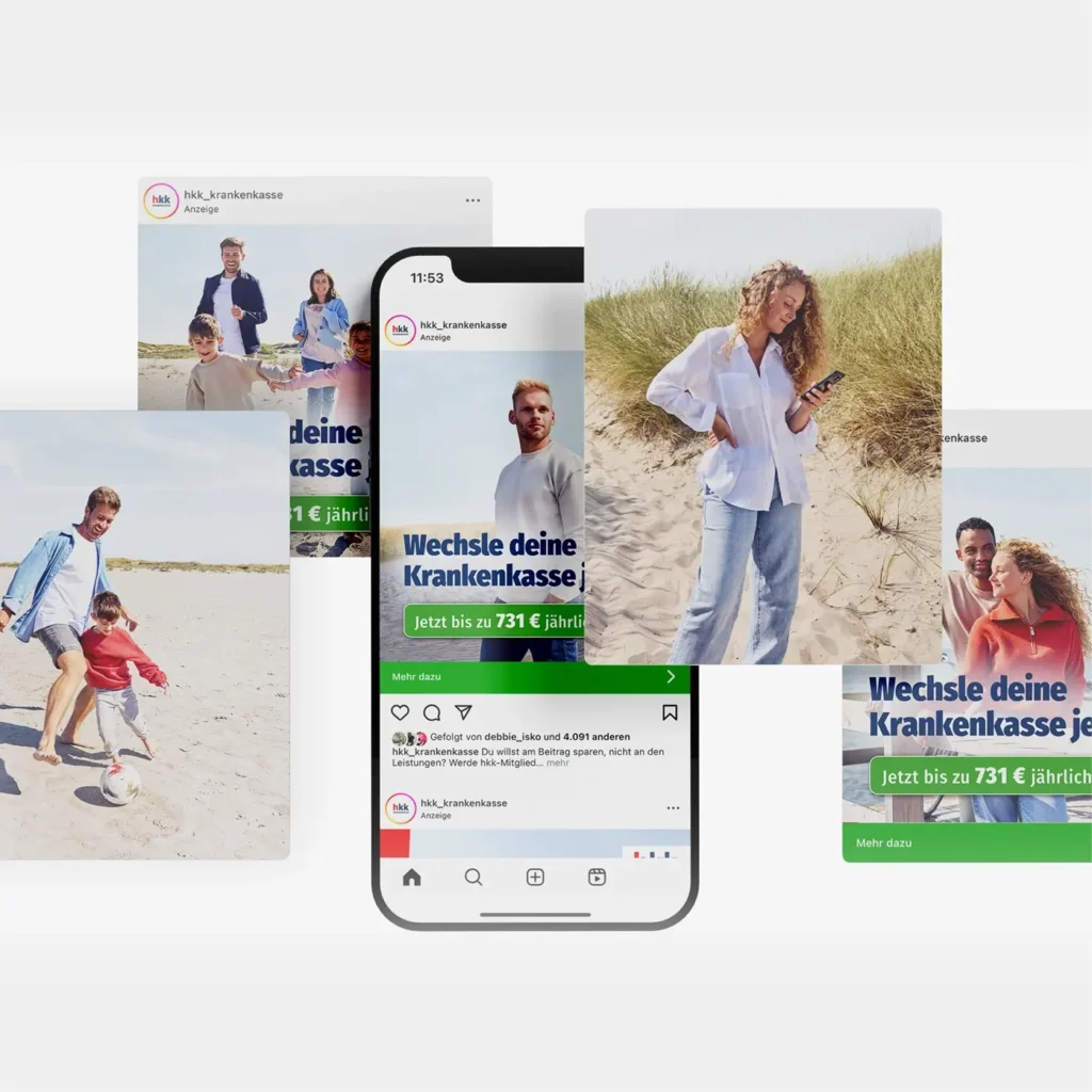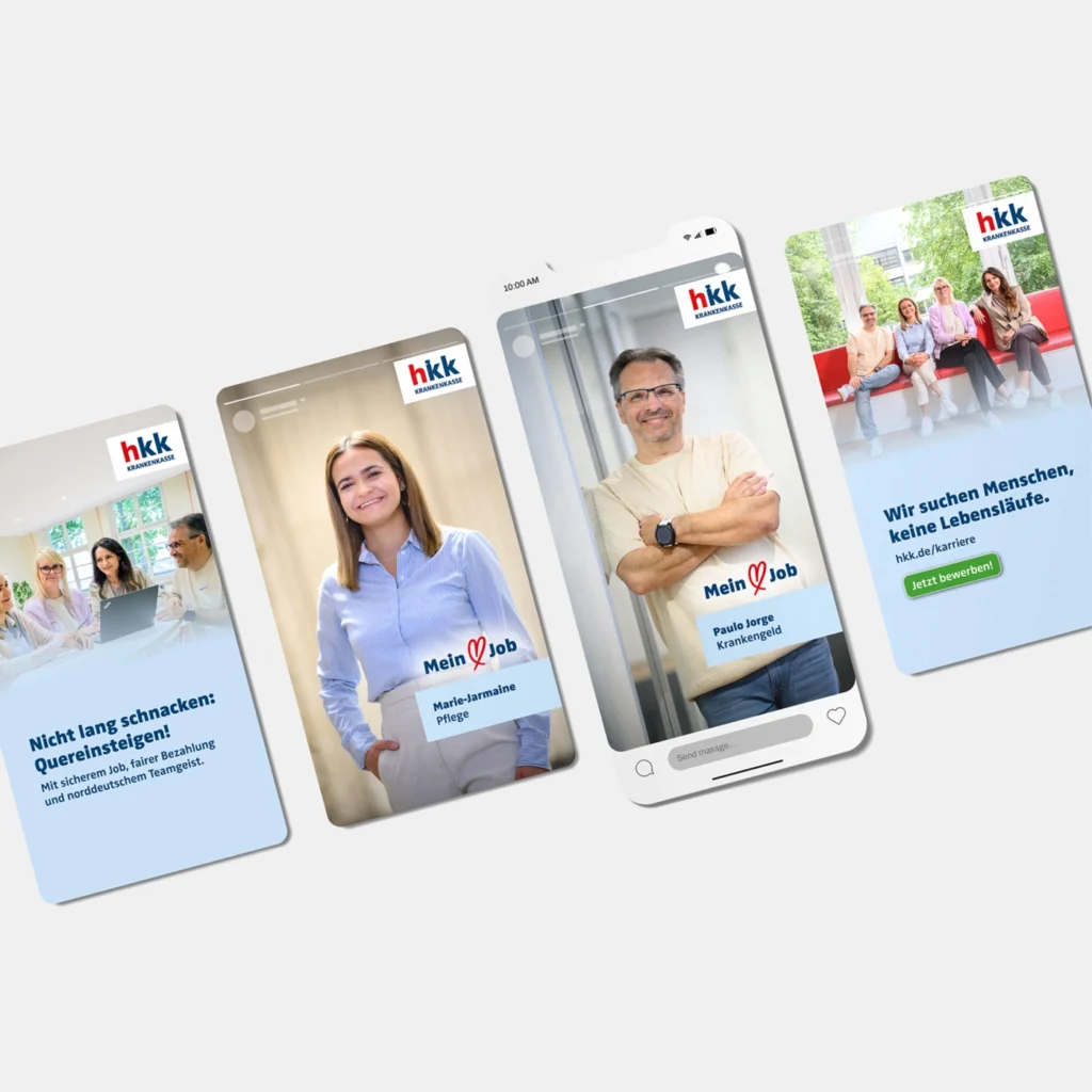 Darüber hinaus haben wir mehr als 850 Einzelprojekte in allen Marketingdisziplinen von Print-, Web- und App-Design sowie Out-of-Home-Kampagnen, Social Media, Arbeitgebermarketing und Messeevents realisiert. Jede dieser Maßnahmen zahlt auf ein einheitliches Erscheinungsbild ein und unterstützt die hkk darin, sich in einem dynamischen Wettbewerbsumfeld deutlich zu positionieren. Wir sorgen dafür, dass die hkk klar, sympathisch und wiedererkennbar wahrgenommen wird.