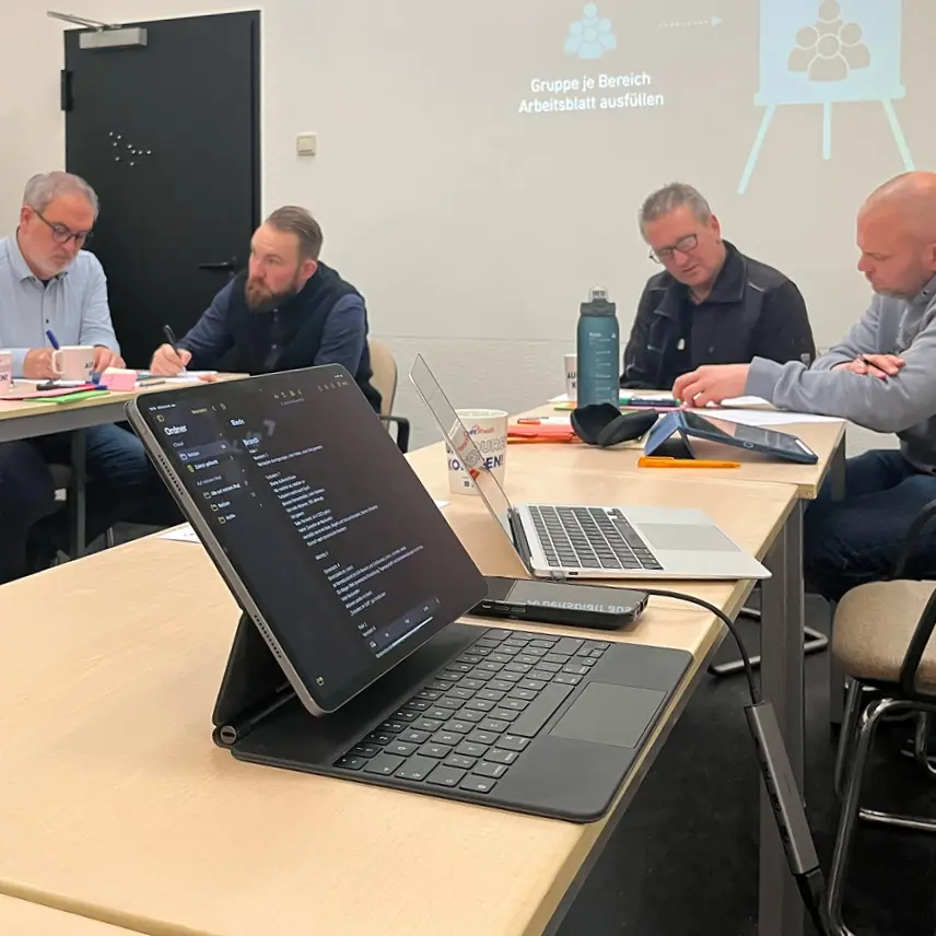 Kein bloßes Moderieren von uns – Sie gestalten aktiv mit. Die Qualität des Ergebnisses entsteht durch Ihr eigenes Mitwirken.